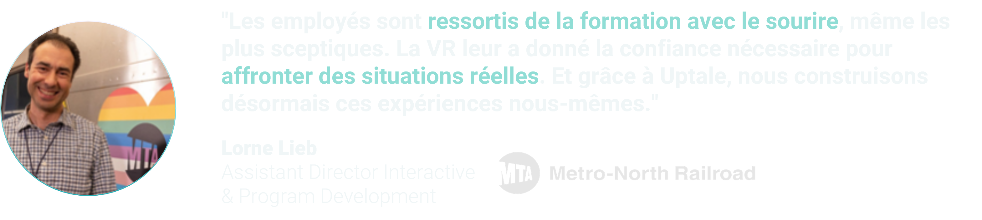 Pour Metro-North Railroad, l’Immersive Learning est une modalité permettant aux employés de se former n’importe quand, de vivre des scénarios émotionnels réel dans des environnements sûrs. Cette modalité permet de faire des erreurs et développe la prise de décision individuelle tout en offrant la même expérience pour chaque employé.